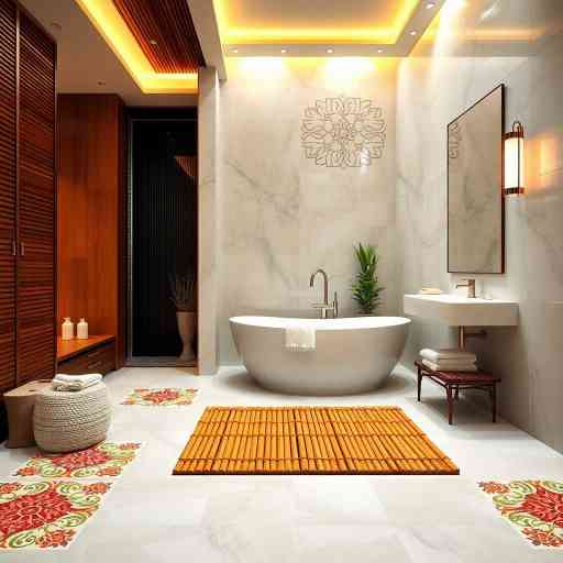 Bring your bathroom to life with colorful, patterned bath mats that mimic intricate tile designs. These vibrant patterns can easily blend with classic tile flooring or modern settings. A bold patterned mat can serve as the focal point of your bathroom, sparking joy every time you step in.